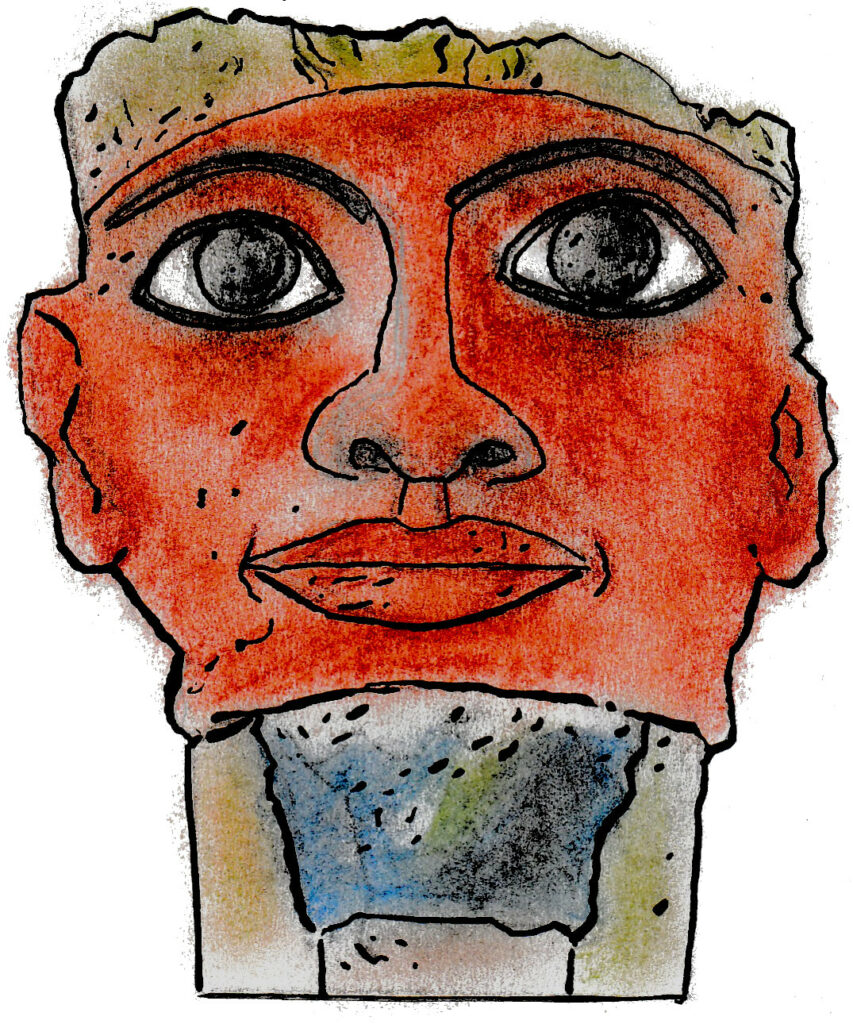 Tête monumentale de la reine Hatchepsout,l’une des cinq femmes à avoir régné sur l’Égypte en trois mille ans d’histoire. Fille du pharaon Toutmôsis Ier, elle épousa son demi-frère Thoutmôsis II et régna pendant une vingtaine d’années avant d’être remplacée par son beau-fils et neveu Thoutmôsis III, sous le règne duquel le royaume égyptien atteint son apogée. À sa mort, à l’issue de dix-huit campagnes militaires, il laisse un héritage considérable. L’Égypte s’étend depuis le Nil méridional jusqu’au-delà de l’Euphrate.