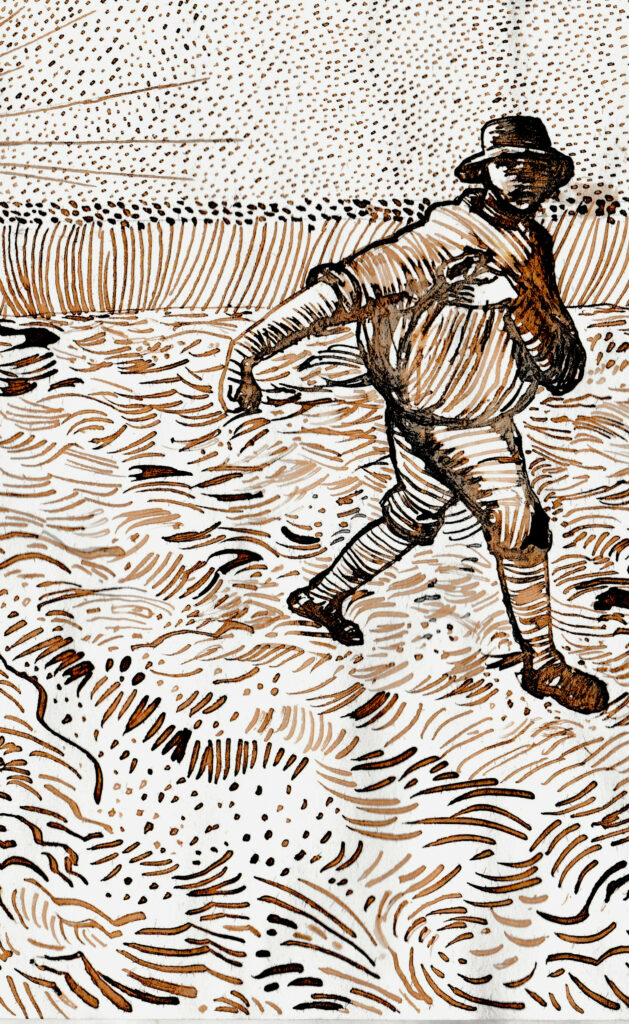 Lors de ses longues randonnées à travers la vaste et aride plaine de la Crau, Van Gogh a peut-être rencontré ce « sportman » pourvu d’impressionnantes moustaches en forme de guidon de vélo, évidemment.
