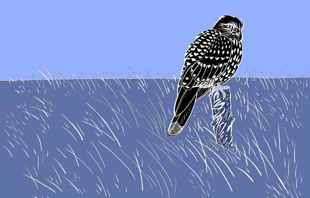 Buse dans la grande prairie. Si ce redoutable chasseur ailé rencontre le chasseur de lépidoptères, cela risque de faire des étincelles, pour un conflit de voisinage.