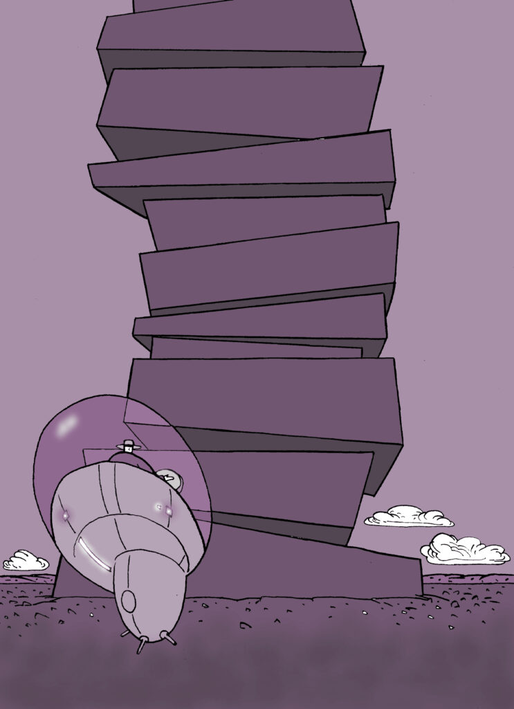 « Il conduisit sans arrêt pendant trois jours et trois nuits. Il crut distinguer une fois une voiture qui le suivait. Inondé de sueurs froides, il prit une autre route, coupant à travers l’immensité désolée de Mars, passant par les petites cités mortes; il continua à rouler pendant une semaine et un jour, jusqu’à ce qu’il eût mis quinze mille kilomètres entre elle et lui. »