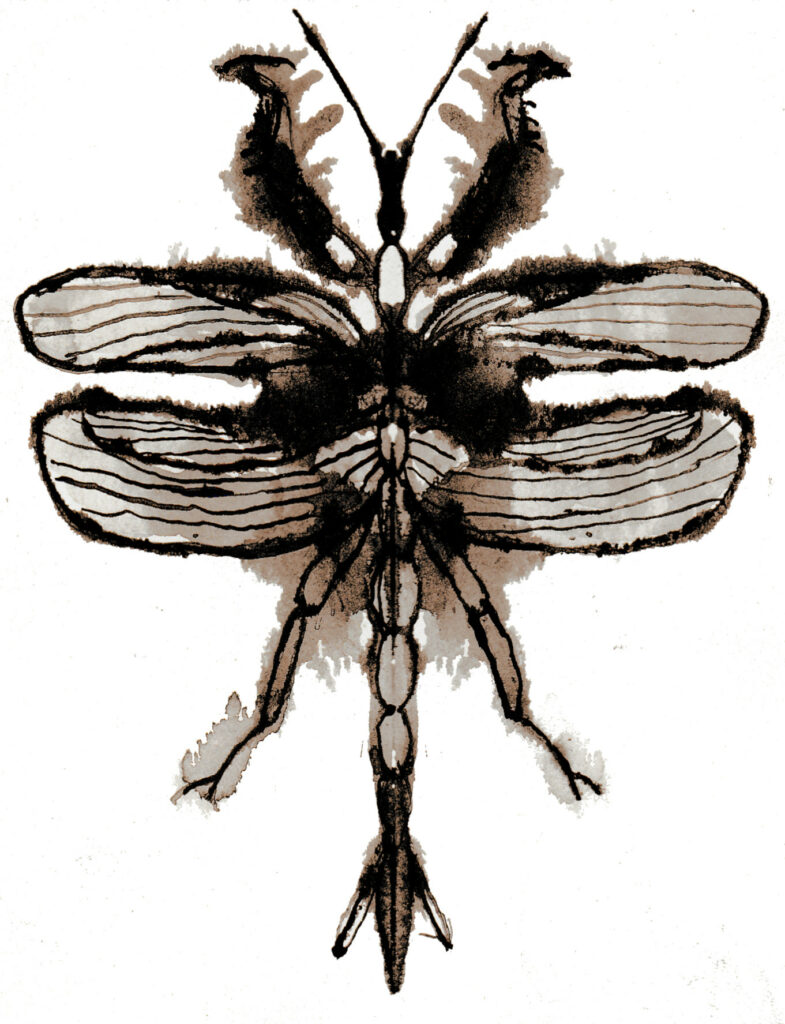 … sans ordinateur. Cet insecte non aléatoire, est une Stenophylla cornigera, c’est-à-dire une mante (plus ou moins religieuse) de la famille des Acanthophidae, originaire du Brésil et comprenant trois espèces :