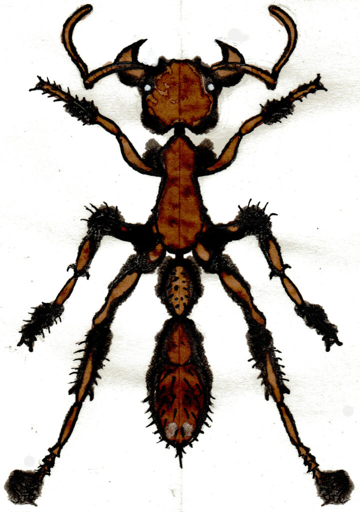 Cette étrange bestiole est la plus ancienne fourmi jamais découverte, qui sommeillait depuis des années, à l’état de fossile, dans les réserves du muséum de l’université de Sào Paulo au Brésil. Des chercheurs l’ont récemment retrouvée et, vraisemblablement après l’avoir dépoussiérée, l’on datée d’il y a 113 millions d’années ! Ces augustes savants ont précisé qu’elle appartenait au groupe des Haidomyrmecinae, aujourd’hui disparu. La présence des fourmis était connue dès le Crétacé sur le super continent de Laurasie, mais pas sur le Gondwana, où se situait l’actuel Brésil. Ce qui indique qu’elles se sont diversifiées et répandues très tôt au cours de leur évolution.