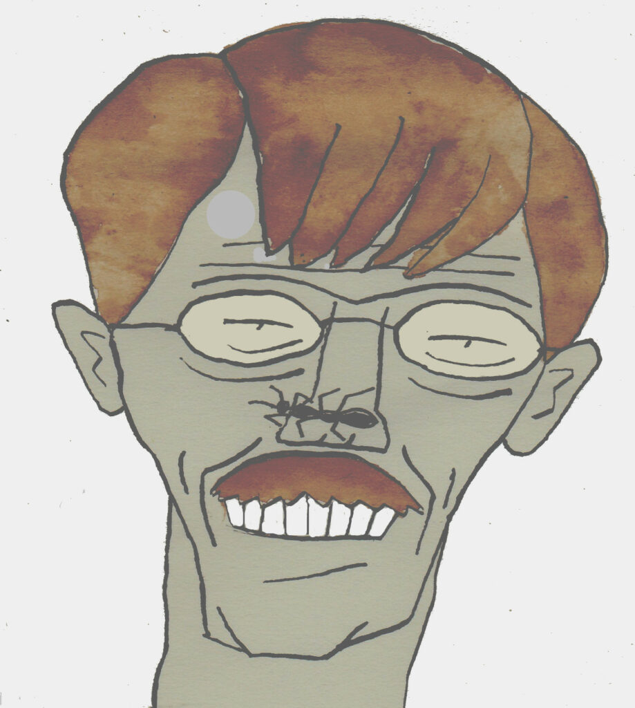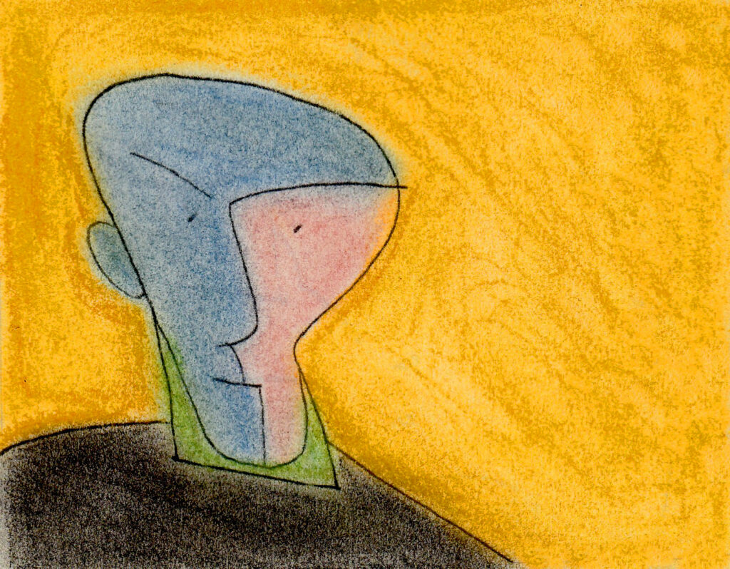 Portrait d’un inconnu en pleine introspection créatrice. Les couleurs, appliquées manuellement, sont authentiques.