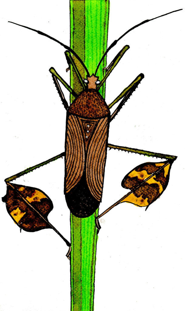 Bitta Flavolineata de la Famille des Coreidae est une punaise d’Amérique centrale et du Sud. Cet insecte herbivore, dont les longues pattes arrière sont pourvues d’excroissances qui imitent les feuilles, se camoufle pour se protéger de ses prédateurs.
