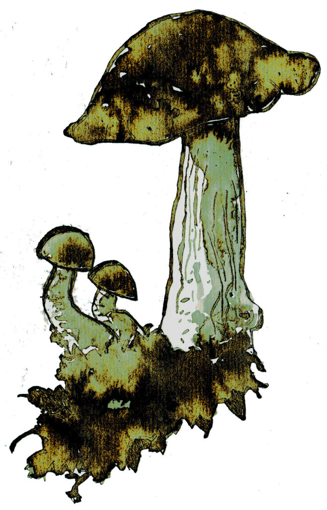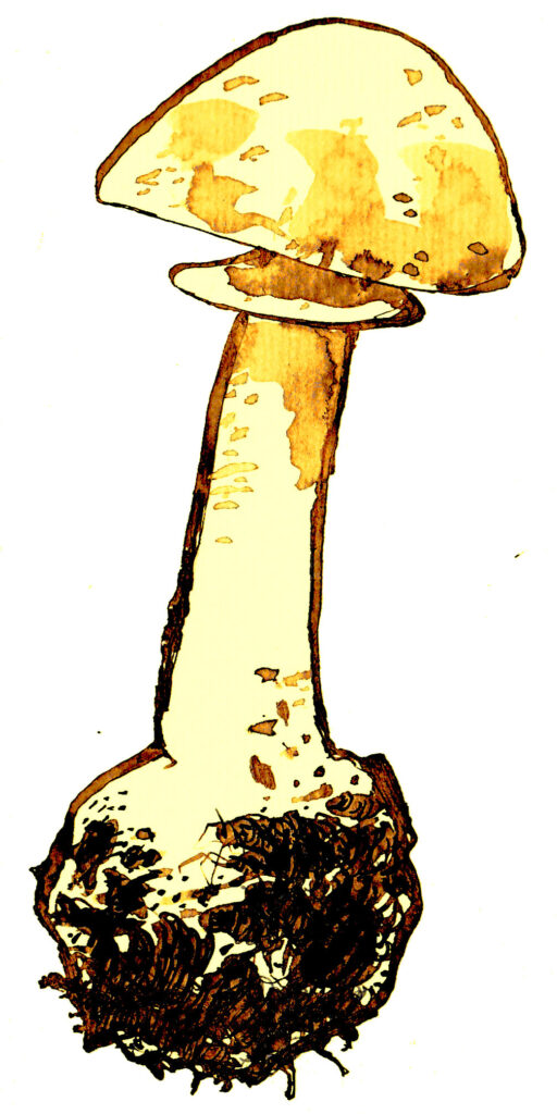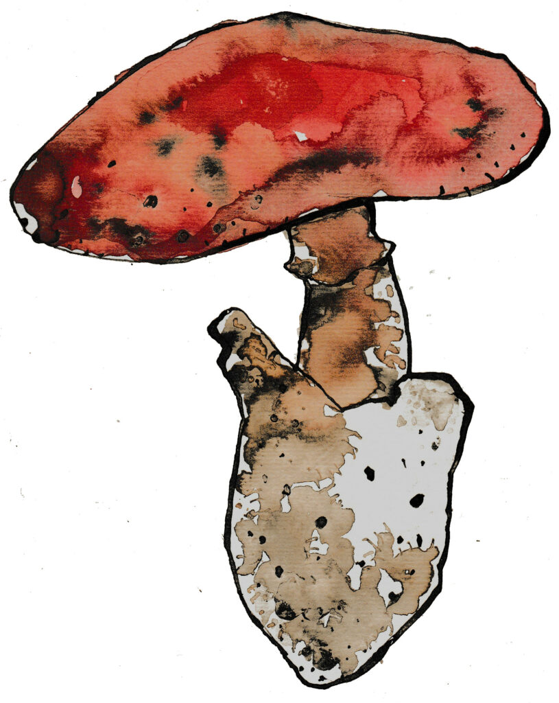 Amanite tue-mouches – Amanita muscaria est peut-être le plus célèbre des champignons – il apparaît dans les illustrations des contes pour enfants du monde entier. Vit principalement sous les bouleaux. Ses verrues blanches s’effacent parfois sous la pluie. Toxique, toutes ses parties sont vénéneuses mais, selon les « spécialistes », rarement mortelles.
